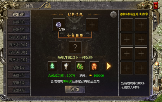 1. 通过消耗稀有材料来合成各种特殊装备,升阶可提升装备属性