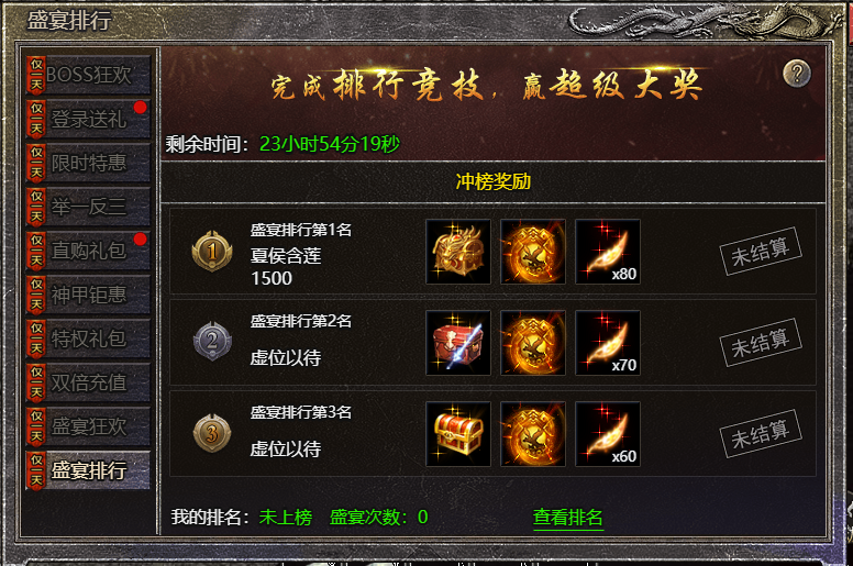1.活动期间,玩家boss盛宴累计达到指定数量即可参与冲榜;