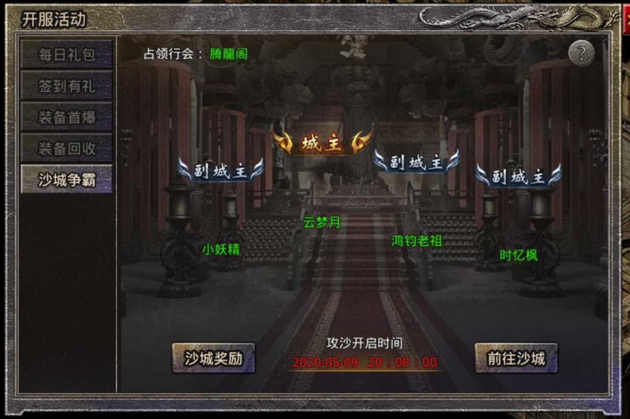 4.活动结束,对当前占领皇宫的行会发放奖励,对个人积分排行发放奖励